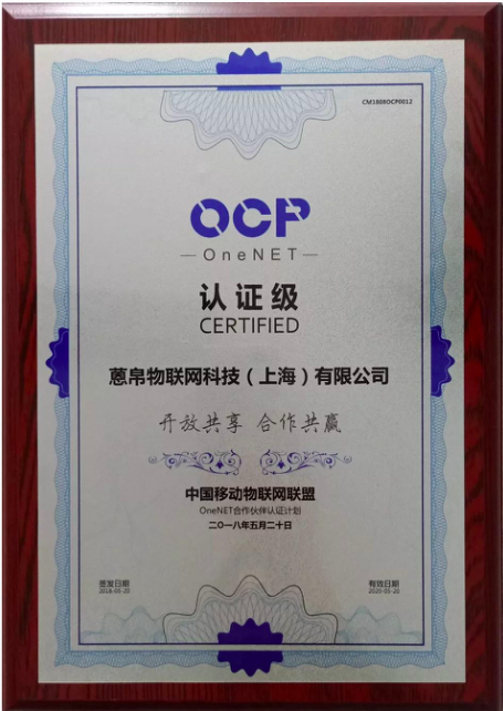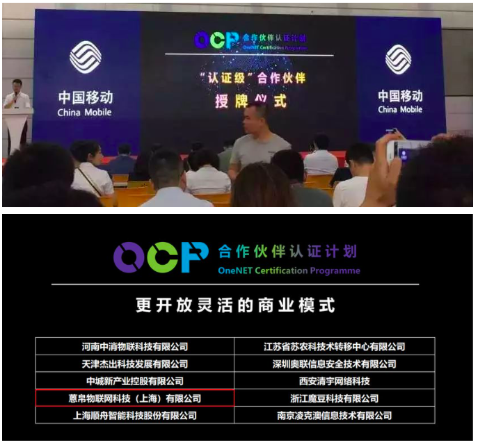 此外,中国移动举行OneNET(OCP)认证级企业授牌仪式,蒽帛物联网科技(上海)有限公司获中国移动授牌,晋升为OneNET认证级(OCP)合作伙伴。